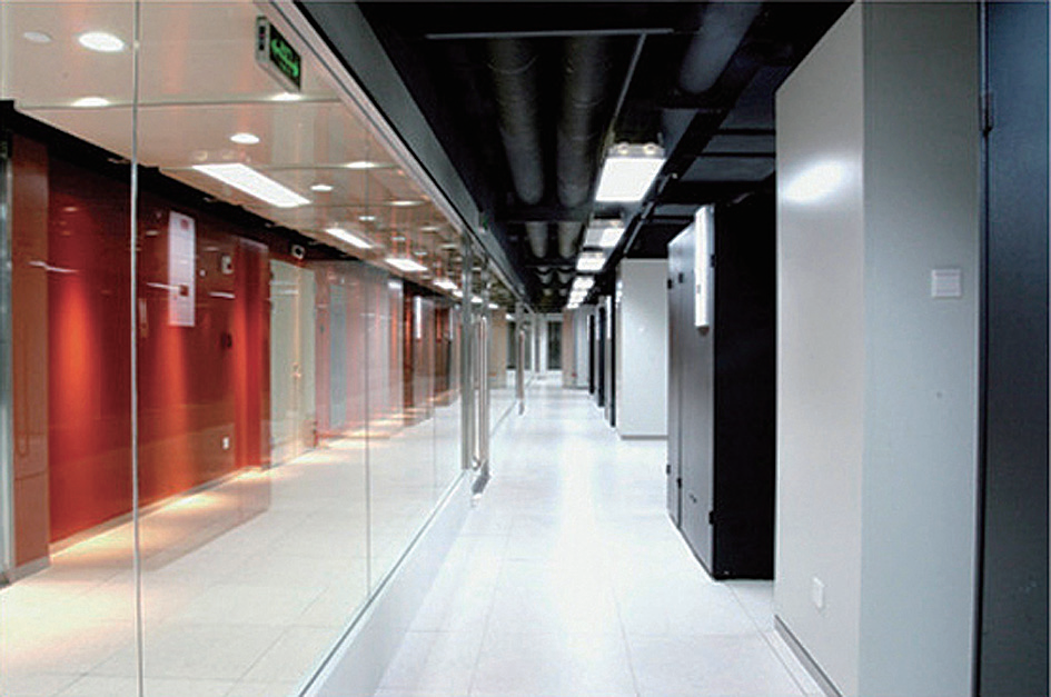 機(jī)房建筑常采用大跨度結(jié)構(gòu)。針對(duì)計(jì)算機(jī)系統(tǒng)的不同設(shè)備對(duì)環(huán)境的不同要求,便于空調(diào)控制、灰塵控制、噪音控制和機(jī)房管理,通常采用隔斷墻將大的機(jī)房空間分隔成較小的功能區(qū)域,同時(shí)還具有隔音、隔熱的效果。